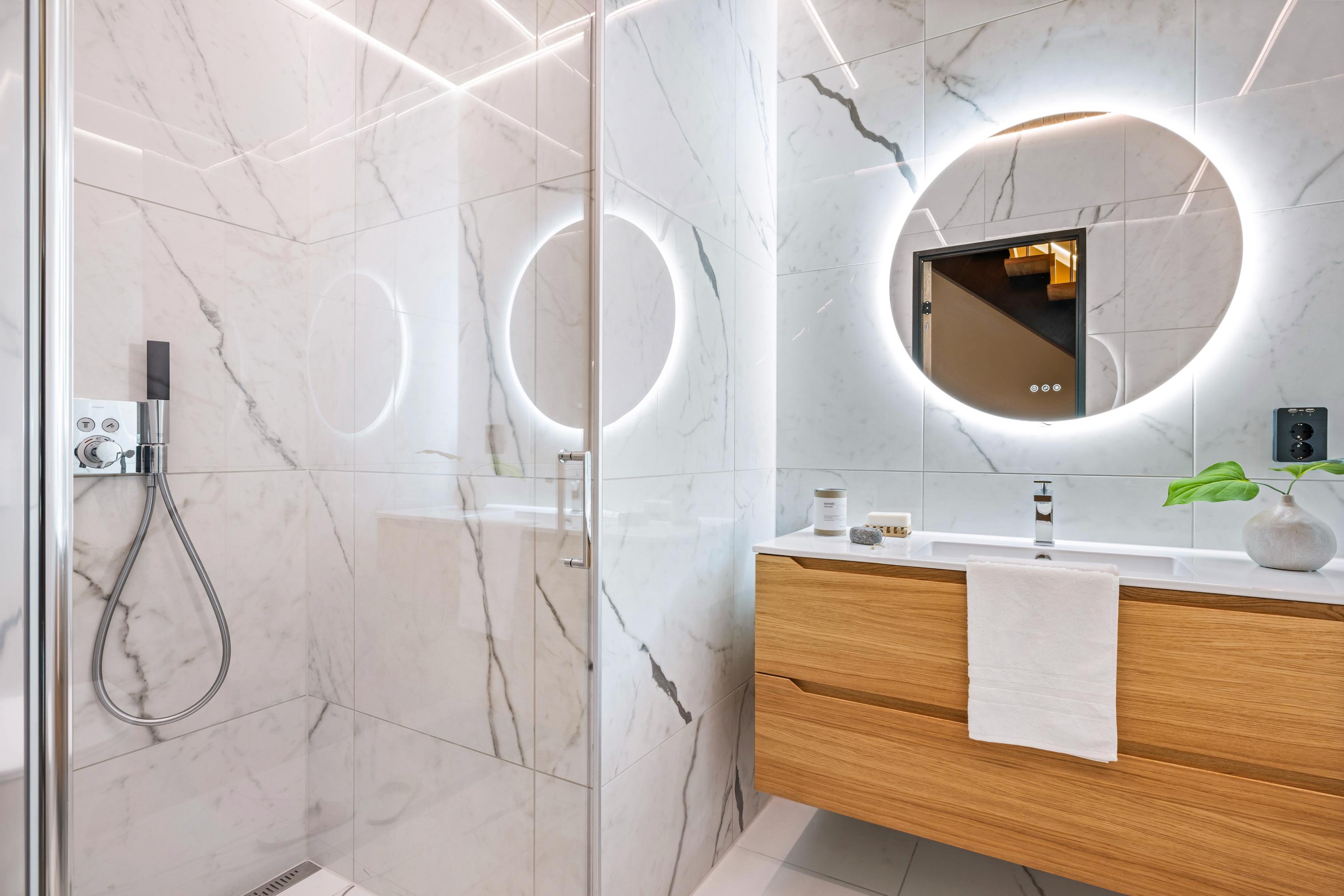 Vi tar ansvar for hele baderomsprosjektet i samarbeid med faste fagpartnere, og leverer komplette, trygge og moderne våtrom.